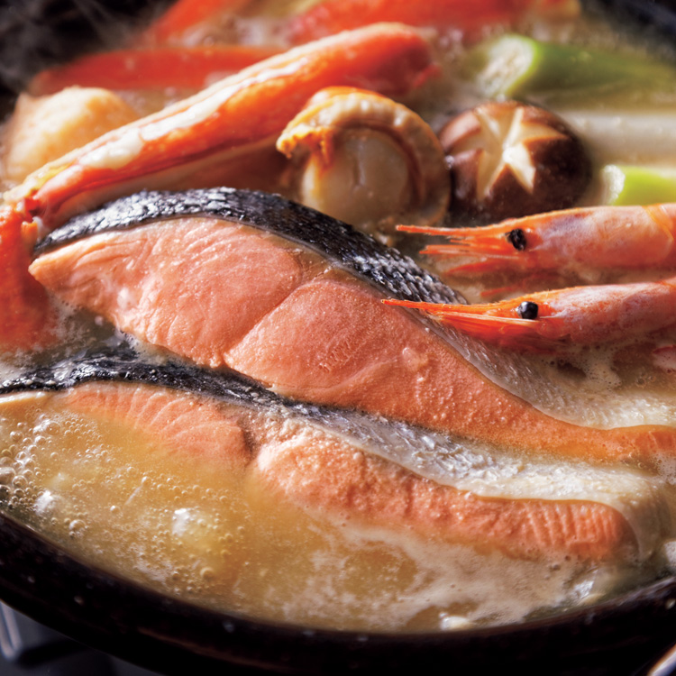 時鮭海鮮石狩鍋 脂がのった時鮭を楽しめる鍋 佐藤水産のお取り寄せ通信販売 北海道の鮭 海産物グルメギフト通販