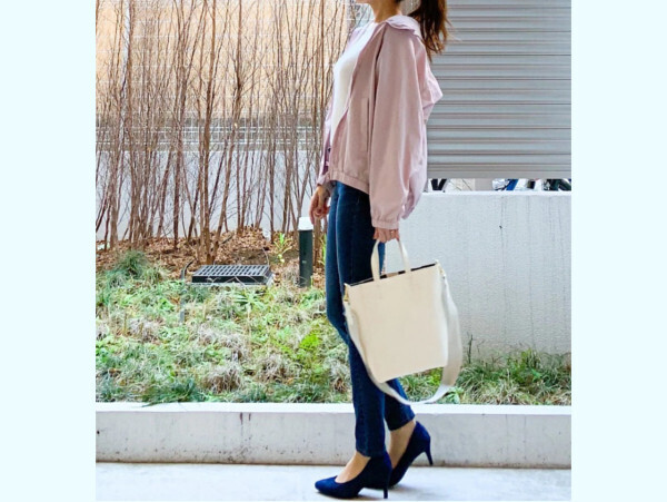 ピンクベージュのバッグをコーデに馴染ませて 幅広い使い方の極意